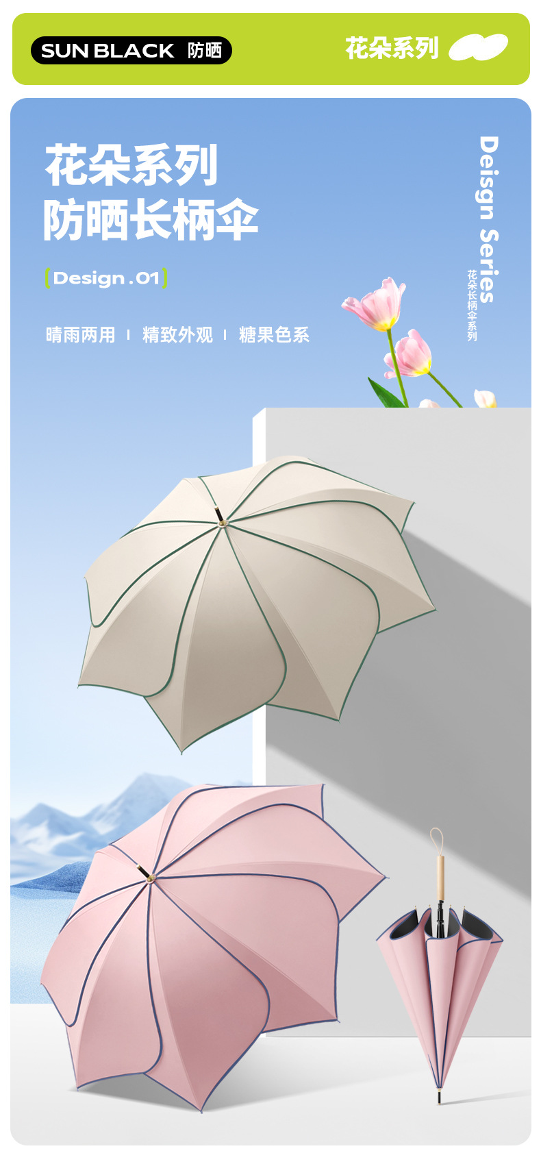 > 花朵木直柄伞