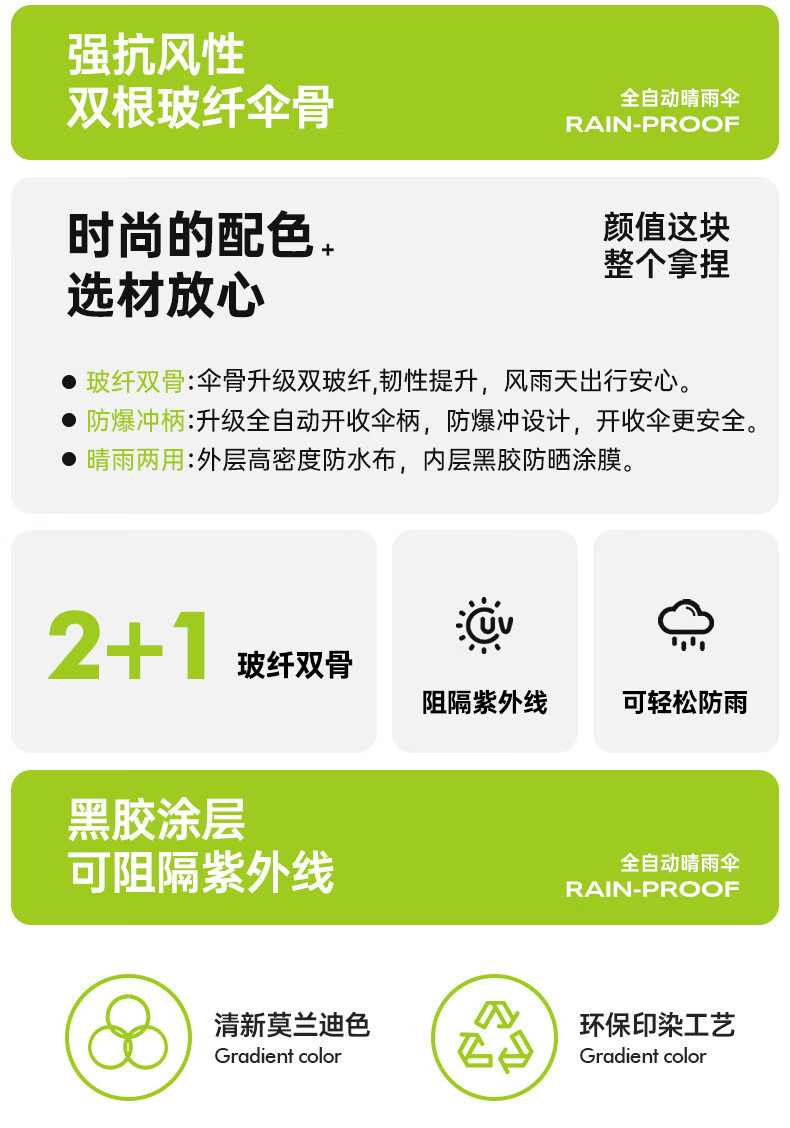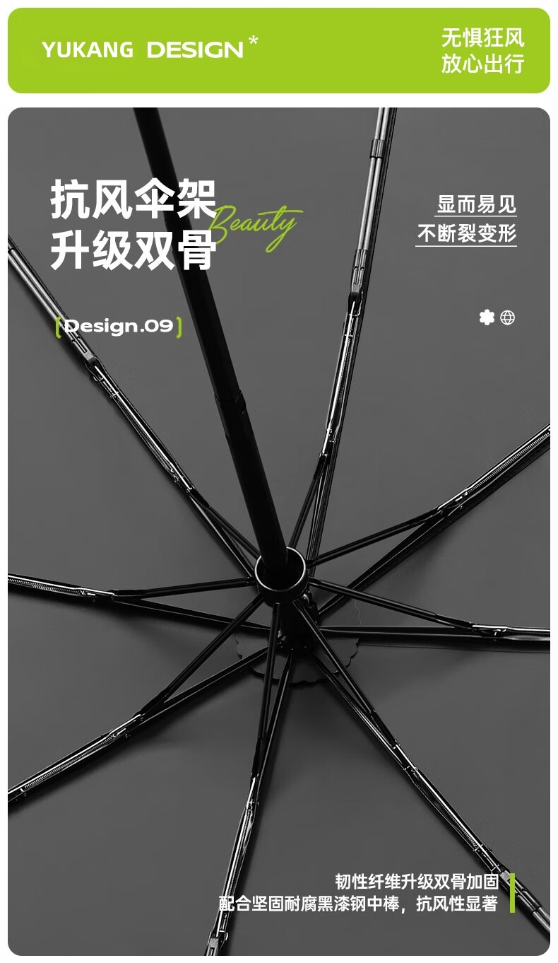 【骨架】:21寸x8k草莓视频色版APP全自开节节收防爆防风防雨防晒伞