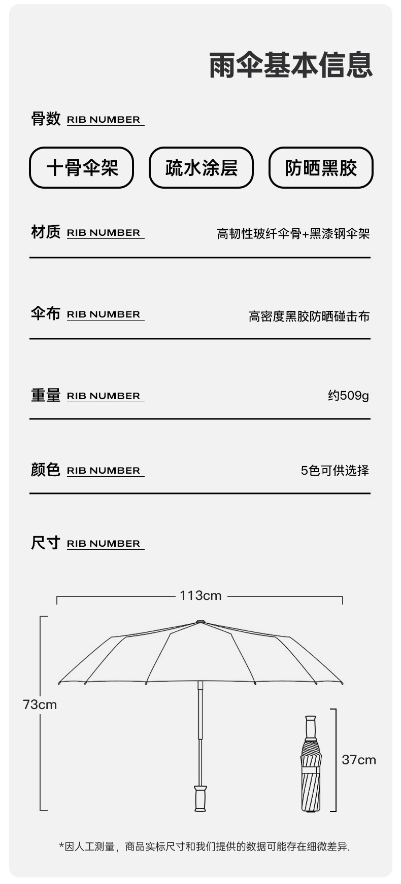 【布料】:190T黑胶布