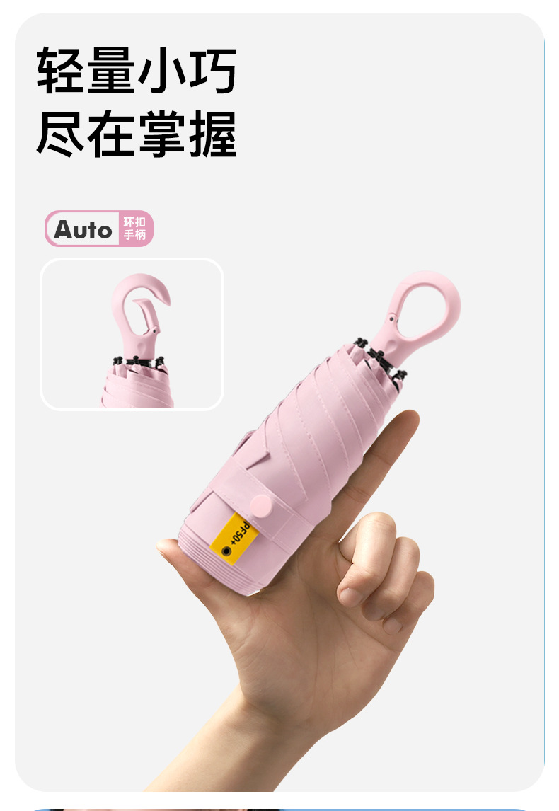 【伞头】:塑胶环扣手柄
