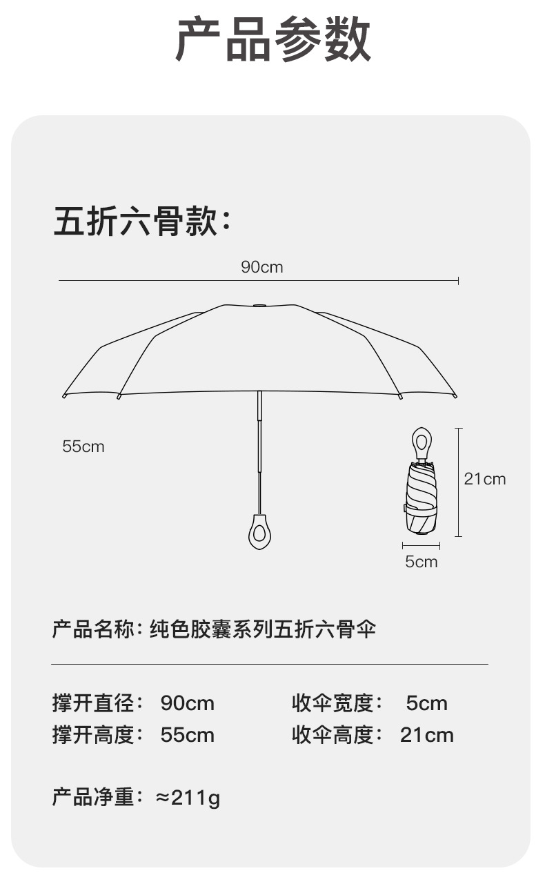【骨架】:19寸x6k环扣手柄五节伞