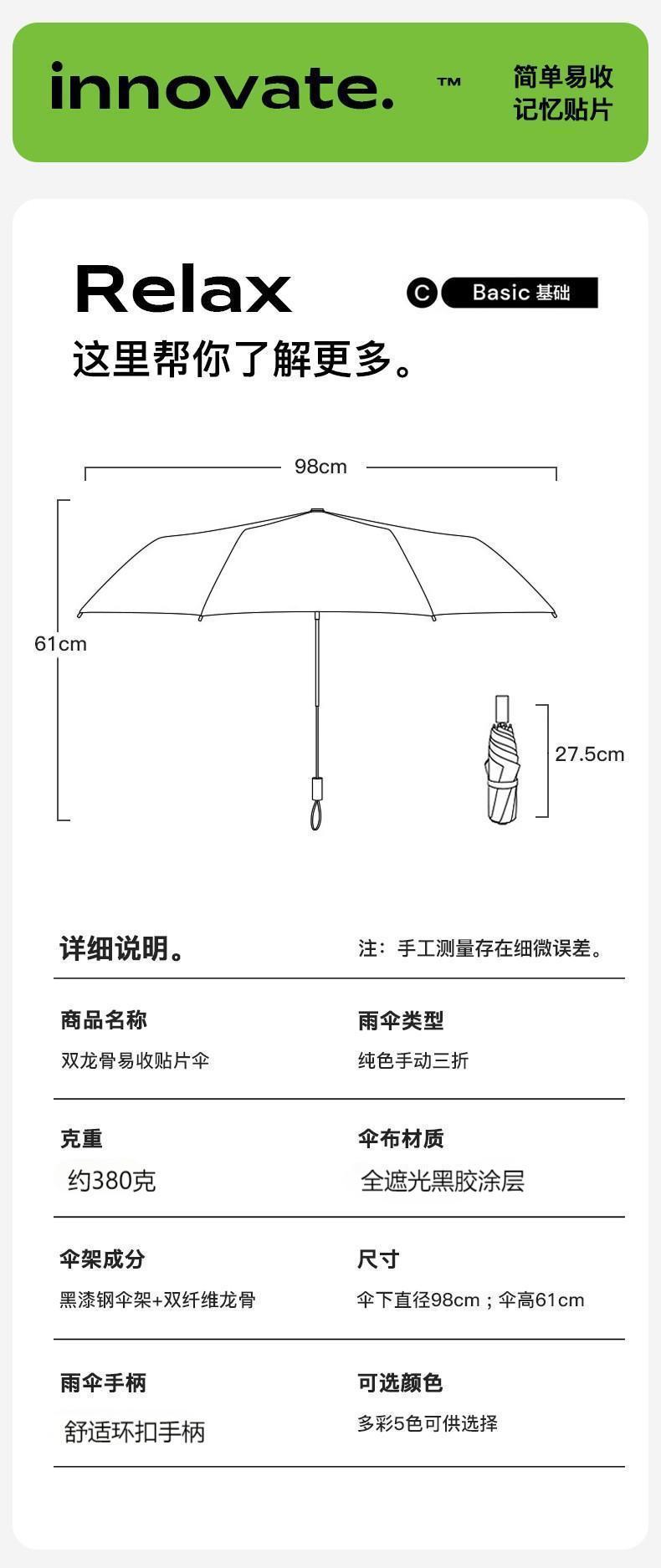 【布料】:190T黑胶布遮光防紫外线